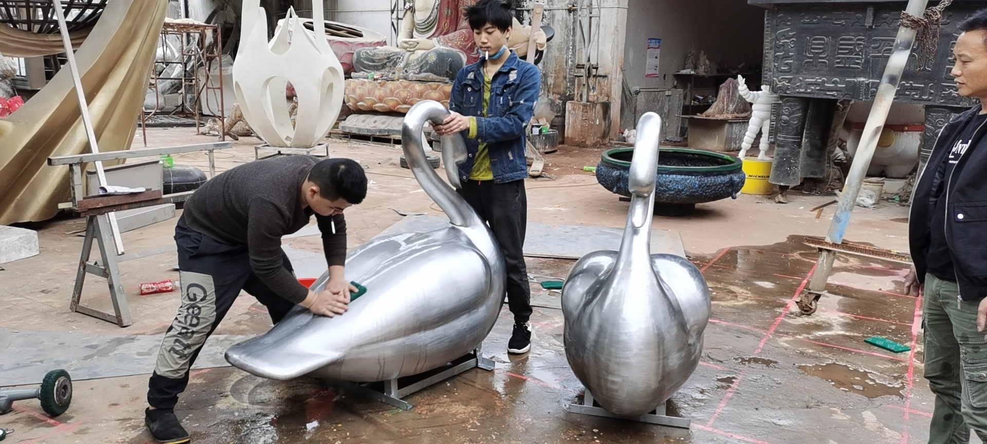 不銹鋼天鵝雕塑即將制作完成 期待中 歡迎來電來圖咨詢定制各種雕塑