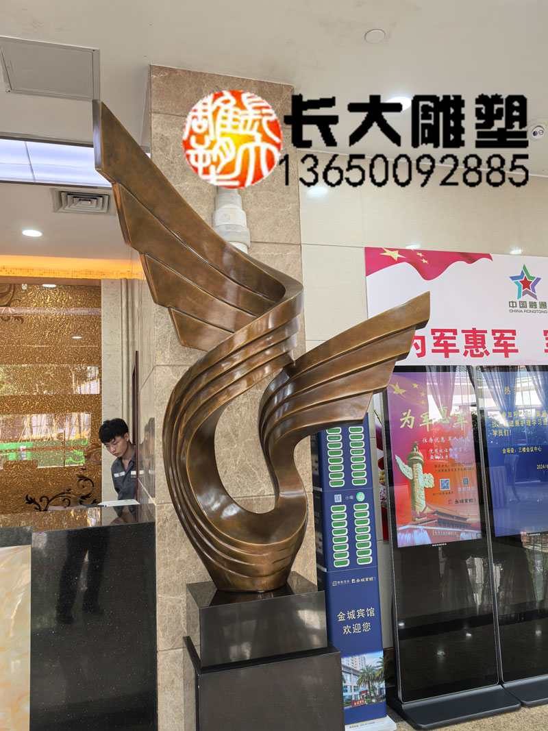 鍛銅適合于制作抽象雕塑作品或簡約化的具象雕塑作品,雕塑線條流暢簡潔,表面處理細膩而肌理豐富,經酸處理做舊后效果更加具有視覺美感。 尤其是在現在的城市美化建設中,鍛銅雕塑更是被廣泛的應用。