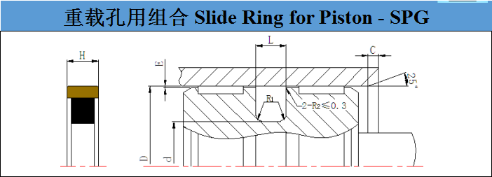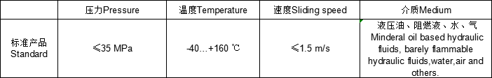 滑動材料用填充聚四氟乙烯,此密封件具有很低的摩擦阻力,消除了爬行,確保有很高的耐磨性。因單個密封件有雙向密封能力,故省去了安裝空間。
